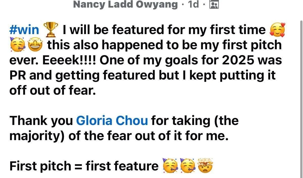 If you just respond to one PR opportunity I post daily, and meet one top-tier journalist I invite to our calls- who loves covering small businesses like yours, it won’t be surprising how quick you can get your first win! -